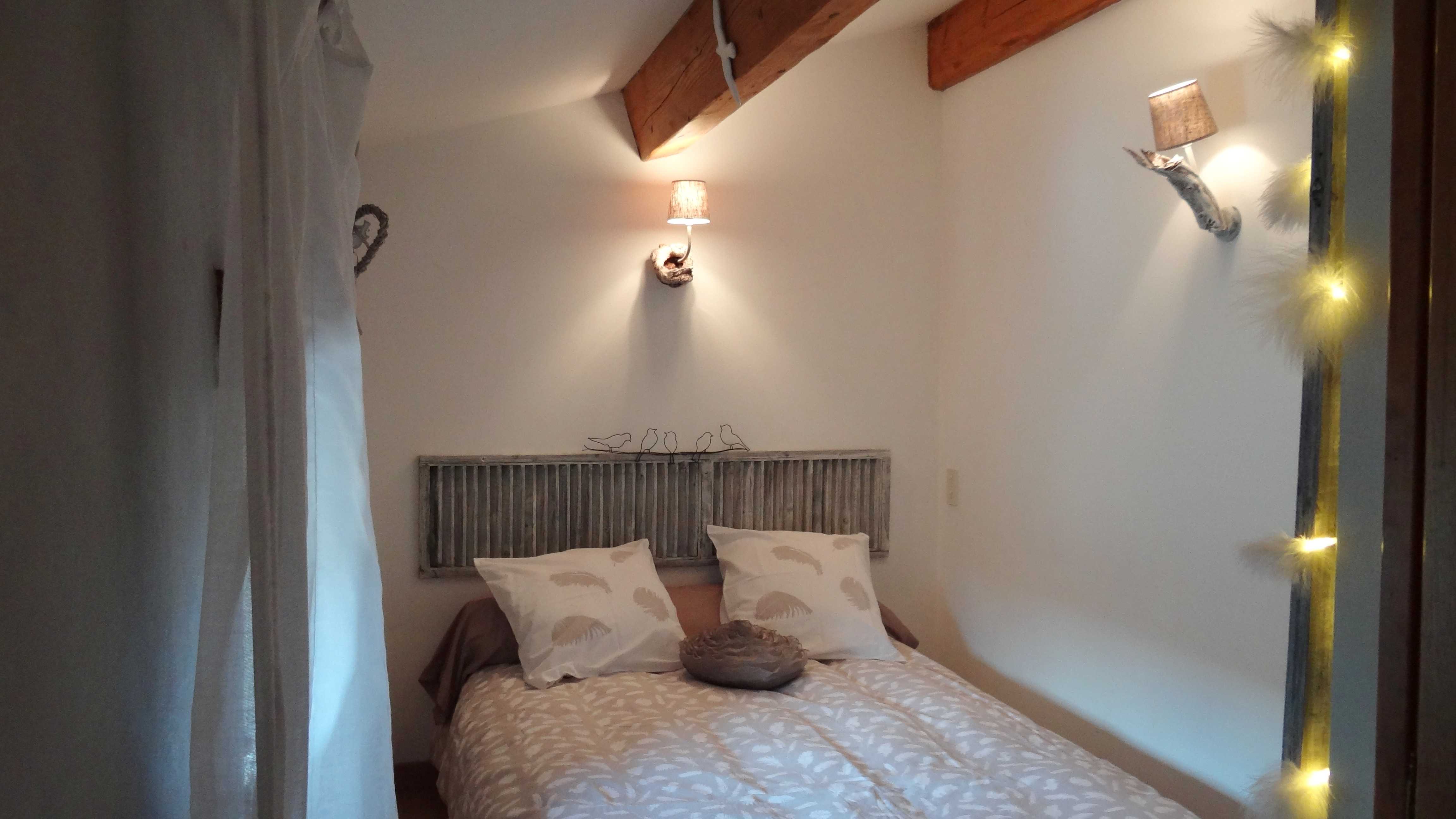 Au second niveau, la chambre « Plume » avec son lit double 140 x 190.