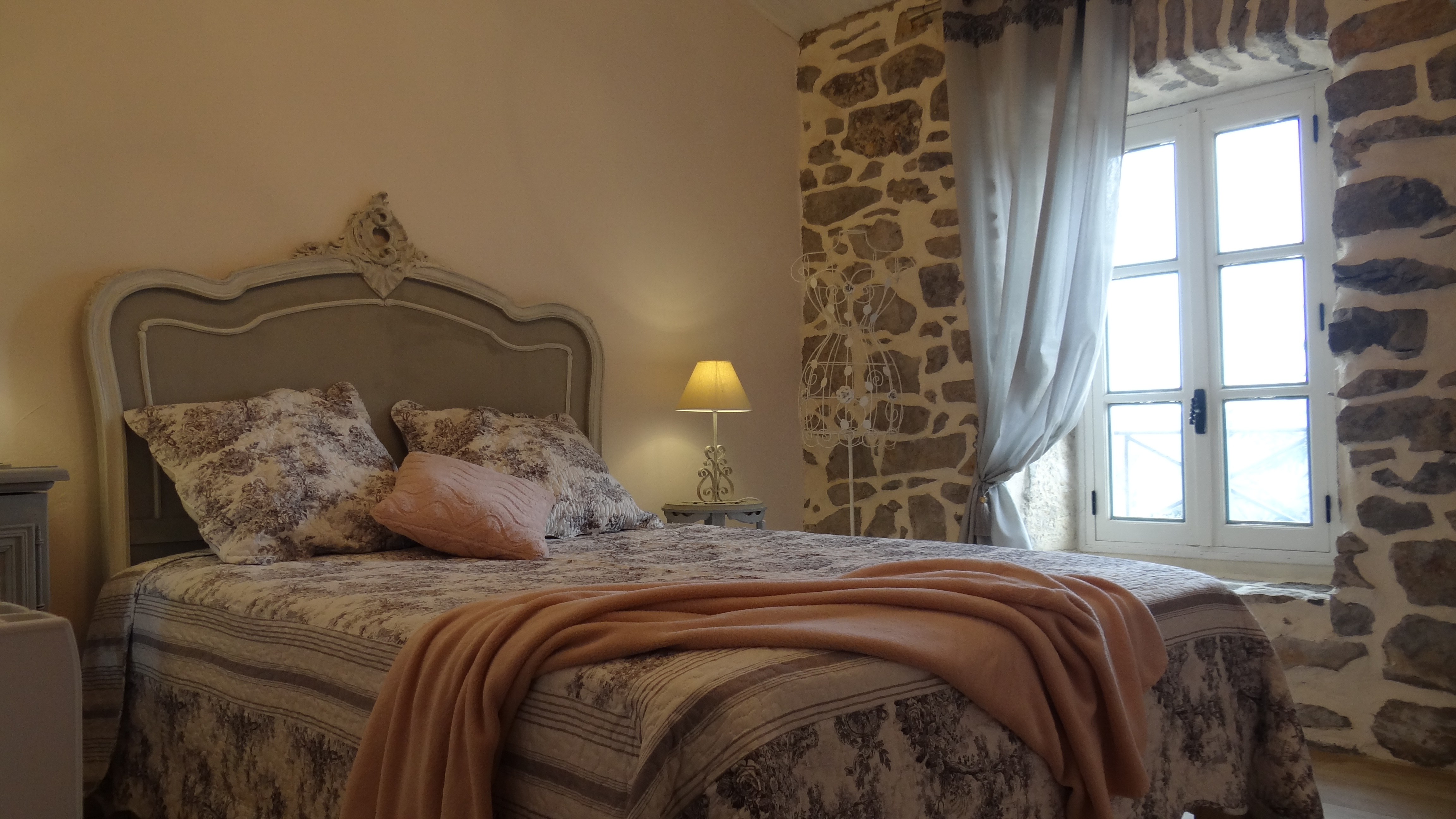 La chambre «Ensoleillée» avec son lit double 160×200 avec sommiers indépendants.
