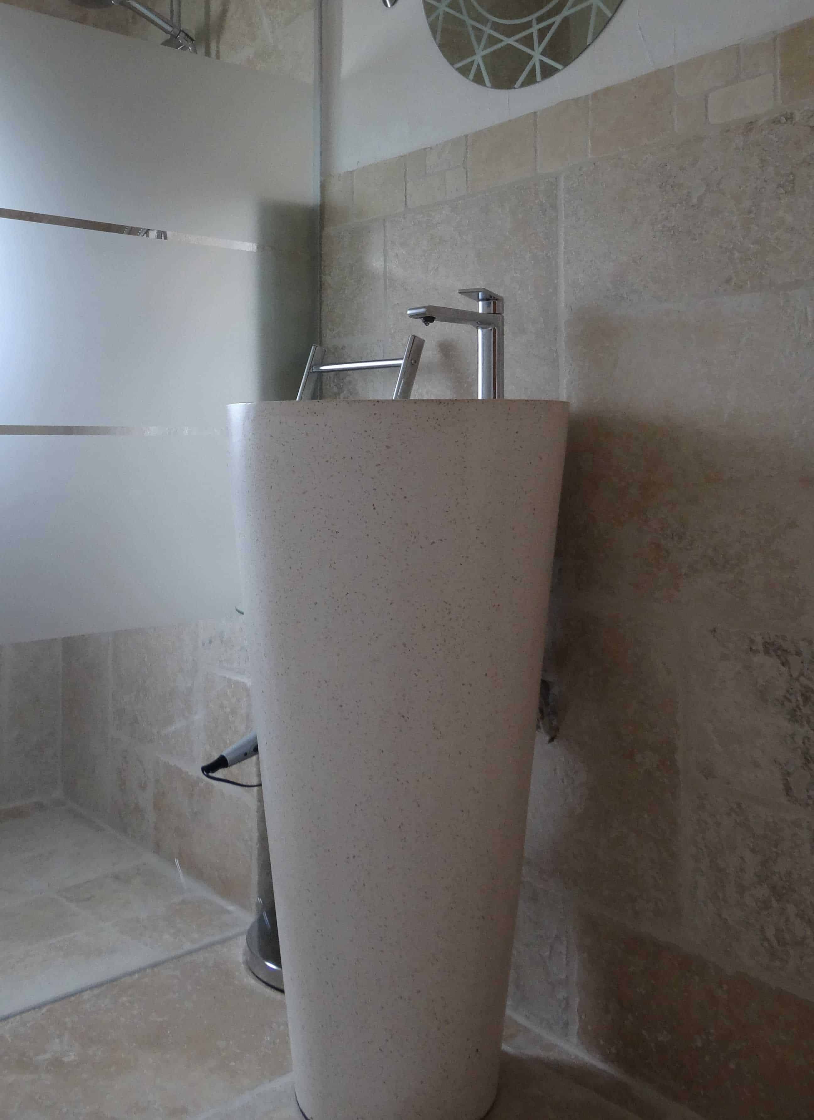 Leur salle d’eau avec douche, 2 lavabos, toilettes séparés.
